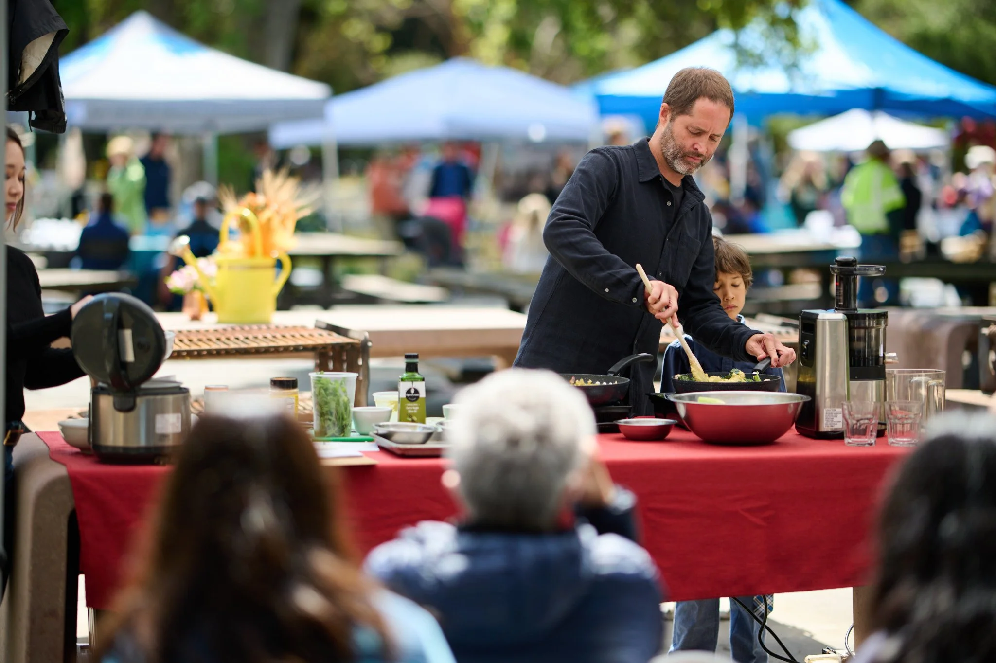 The Plant Cafe was invited to take part in the We Love Earth Festival located at Flood Park in Menlo Park on April 16, 2022, to do a cooking demo for the guests. Our founder Matthew showcased The Plant Cafe’s signature yellow curry bowl and how to make the sauce from scratch as well as how to utilize vegetables and parts that would normally go to waste in a healthy juice.